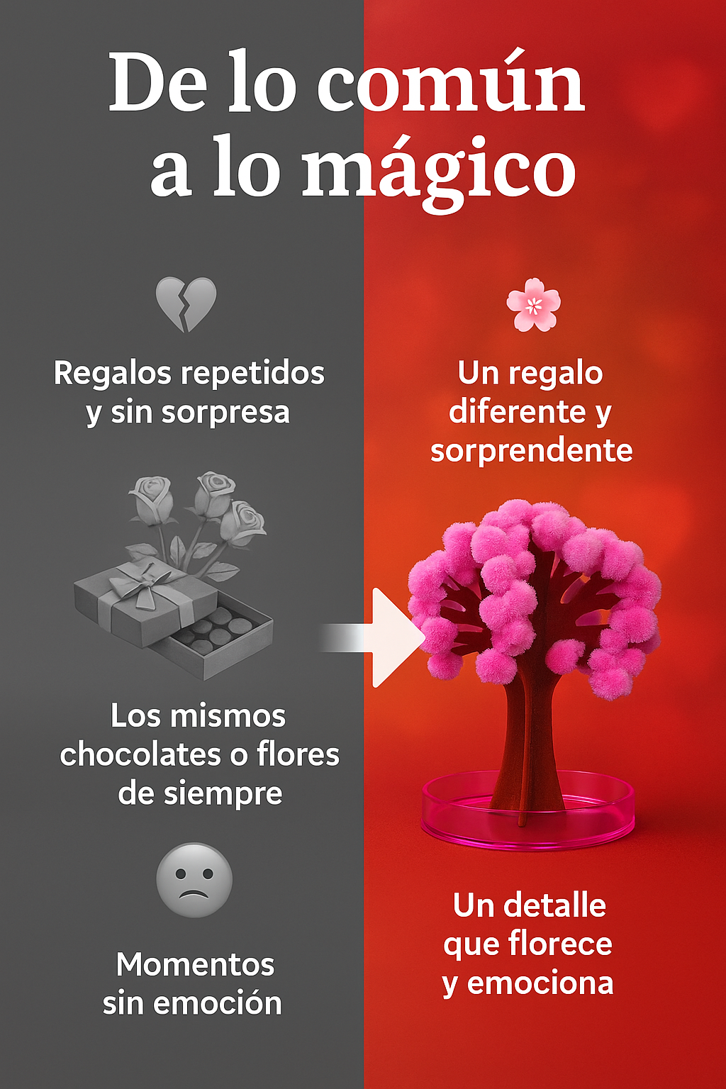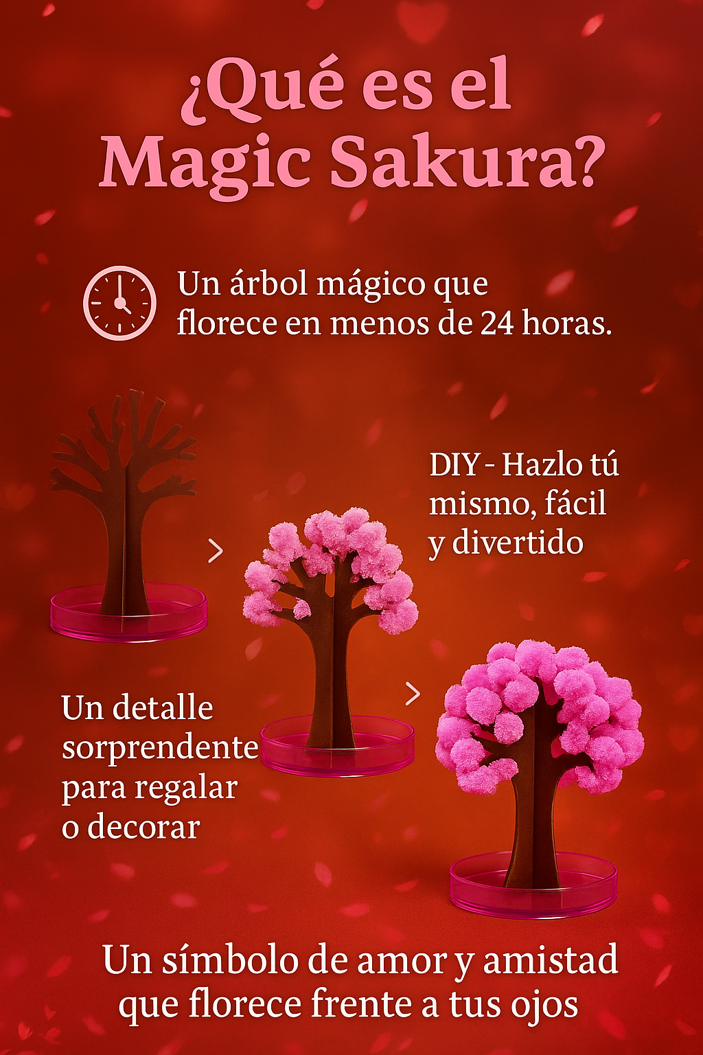 Es un árbol decorativo que florece de forma natural poco después de ser activado. Su apariencia mágica y la forma en que reacciona al ambiente lo hacen único. No necesita luz ni agua. Ideal para espacios interiores donde desees sentir calma, conexión o poner a prueba la energía de tu hogar.