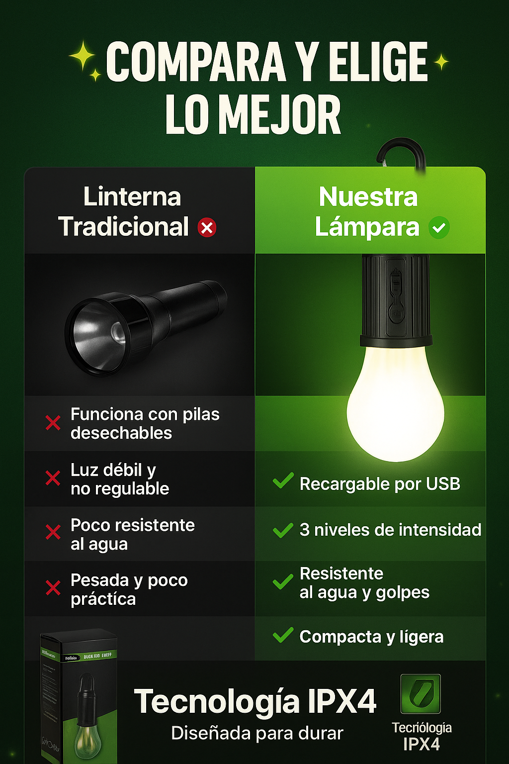 🌟 Más de 900 personas en Colombia ya confían en nuestra lámpara recargable IPX4.