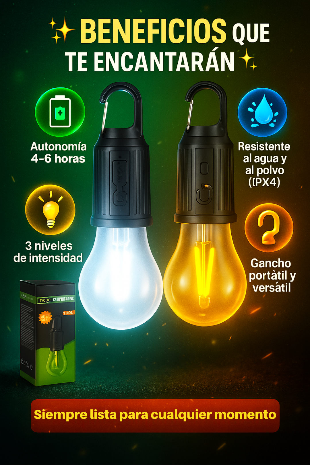 🔌 “Adiós pilas. La cargo con power bank y la llevo a caminatas nocturnas. Trae luz blanca y cálida.”